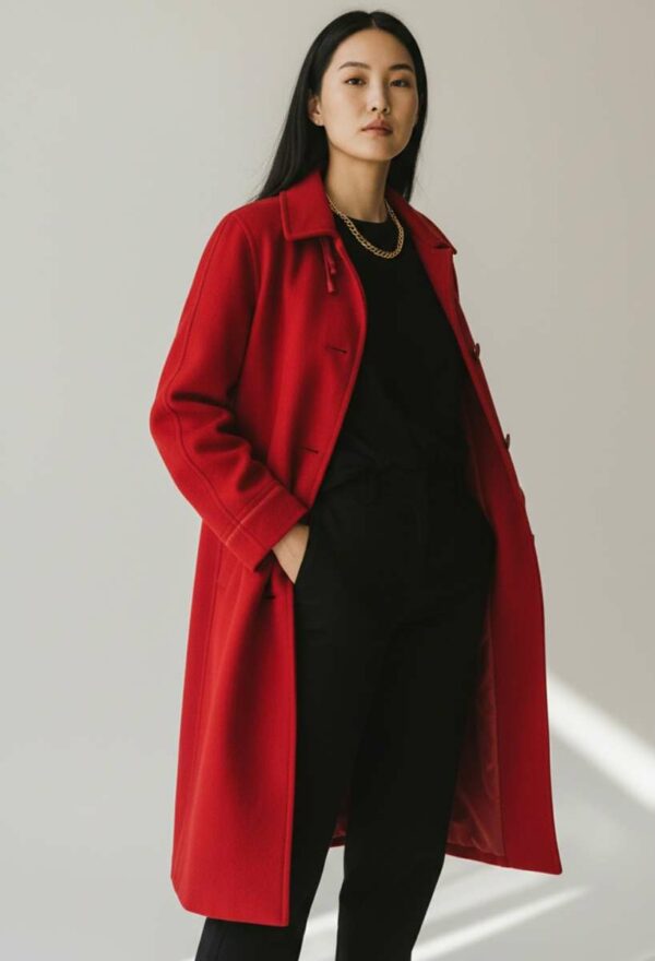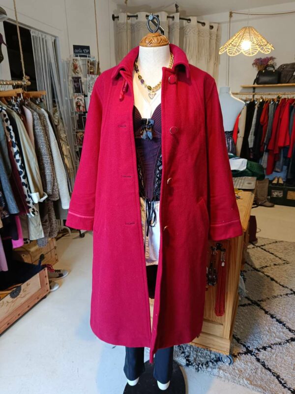 Magnifique manteau en laine rouge très bon état